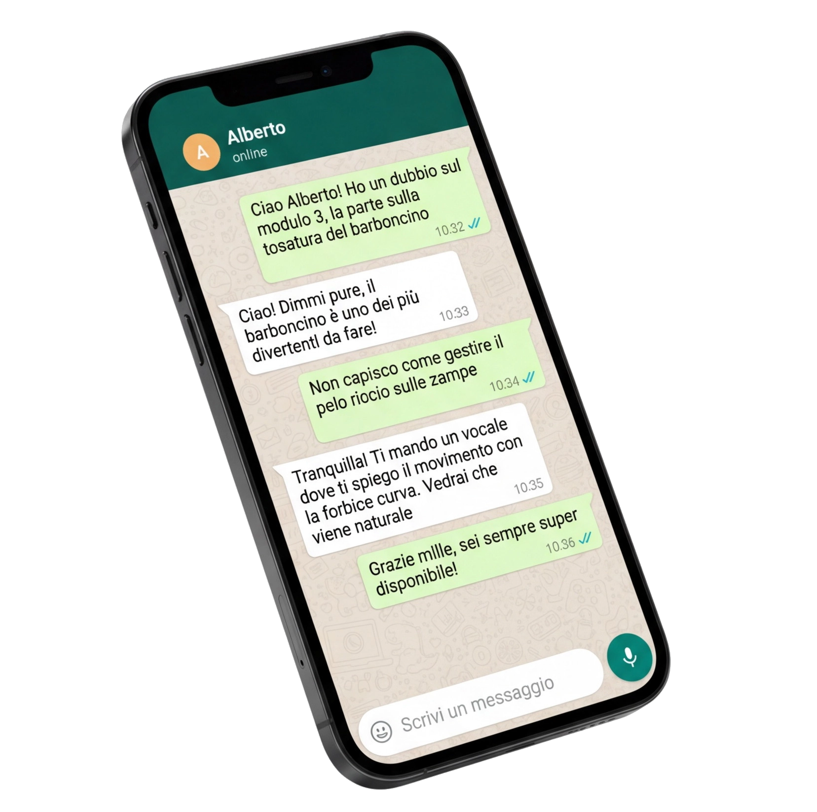 Per qualsiasi dubbio, domanda o incertezza, avrai il mio WhatsApp personale dove potrai farmi domande e ricevere immediatamente una risposta.